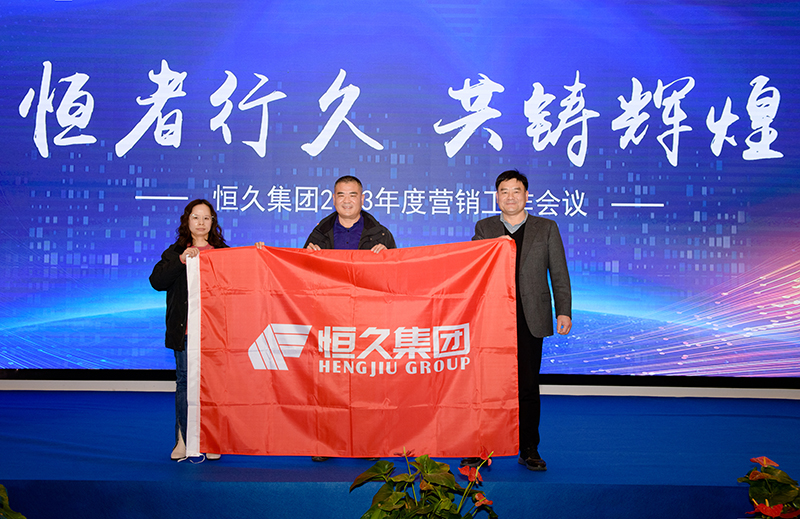 各子公司销售代表上台发言,就年度营销目标、营销思路,营销案例、营销经验、营销创新、特色产品等做了交流汇报。会议中,集团总经理寿峰为各子公司团队举行了授旗仪式,各团队接旗后亮态度、表决心。